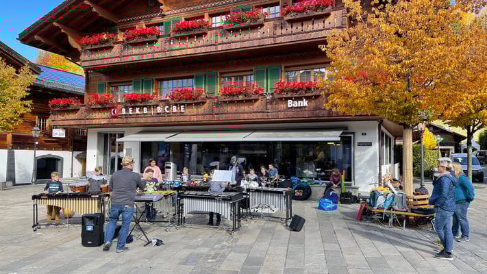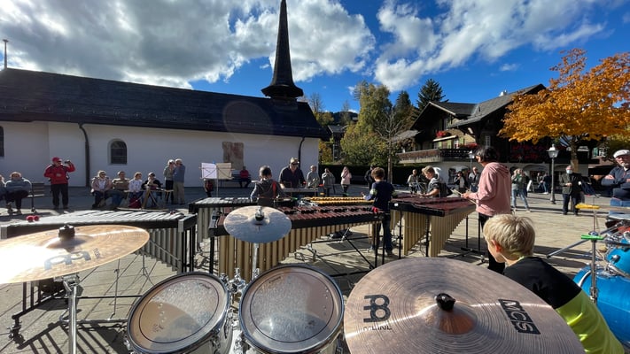 Trotz der herrschenden Corona-Situation und bedecktem Wetter reiste eine kleine, aber feine, Gruppe bestehend aus hochmotivierten Orff- und Schlagzeugschülern zusammen mit einem musikbegeisterten Leiterteam vom 11. bis 17. Oktober 2020 nach Gstaad ins alljährliche Orfflager. Nach der Ankunft im Ferienhaus Alpenblick verköstigte der legendäre Spitzen-Lagerkoch Res Hofstetter die Teilnehmenden mit einer Portion Älplerhörnli und Apfelmus. Die bestgelaunten Musikschüler waren in den bestens bekannten Räumlichkeiten schnell eingerichtet, sodass die Probenarbeit bereits am Sonntag starten konnte. Dank dem grossen musikalischen Interesse der Schüler liessen sich die Proben, jeweils vormittags, kurzweilig und effizient gestalten. Erstmals im Orfflager war die Seilbahn zum Horneggli ab Schönried im Oktober noch geöffnet. Diese Gelegenheit nutzte das Orfflager für einen Ausflug auf den schneebedeckten Blumenweg mit fantastischer Panoramasicht. Zudem standen wiederum der Seilpark Zweisimmen und das Hallenbad in Sportzentrum Gstaad auf dem Programm. Das Schlusshighlight bildeten der bunte Abend, sowie das traditionelle Platzkonzert vom 16.10.2020 auf dem Kapälliplatz in der Fussgängerzone von Gstaad. Die einstudierten Werke werden voraussichtlich auch am 29.11.2020 in der röm. kath. Kirche Wangen bei Olten am alljährlichen Adventskonzert der Orffgruppen Wangen bei Olten aufgeführt.