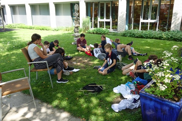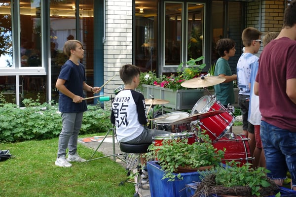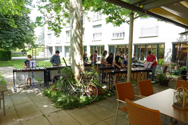 Nach über 20 Jahren im Ferienhaus „Alpenblick“ in Gstaad zügelte das Orfflager dieses Jahr, infolge Pensionierung des langjährigen Betriebsleiters, nach Schönried ins Ferienhaus „Fraubrunnen“. Die Vorfreude auf das neue Haus, die neue Umgebung und natürlich die Lagerwoche war riesig. Bei der Ankunft wurden die Erwartungen der Teilnehmenden sogar übertroffen. Auch das Wetter spielte mit und zeigte sich von seiner besten Seite. Bei strahlendem Sonnenschein konnten die neuen Räumlichkeiten bezogen werden, sodass jedes Instrument am richtigen Ort platziert werden konnte. Nach dem raschen und reibungslosen Einrichten wurde vom Küchenteam auch schon das leckere Mittagessen bereitgestellt.