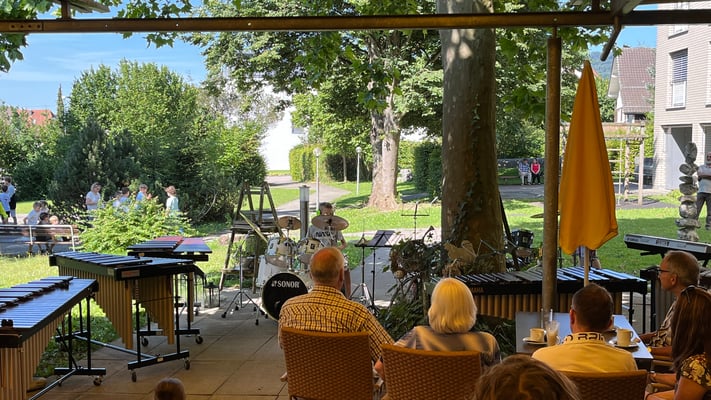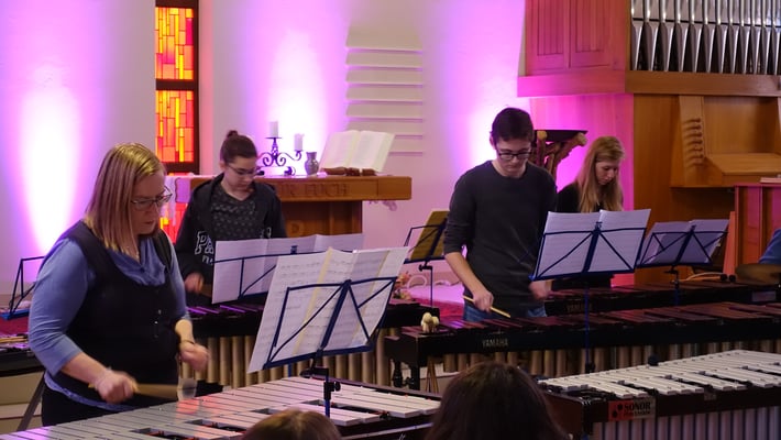 Es folgte ein funkelndes Feuerwerk namens «Mexican Dance». Der Solist Niklas Wohlfahrt und die Solistin Zoe Schindelholz spielten die Marimba mit einem beeindruckenden Tempo.