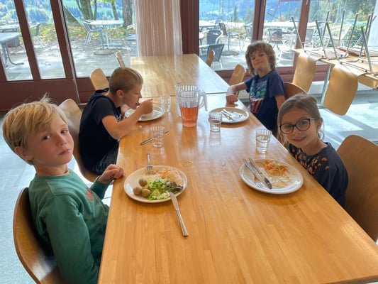 Unter dem Motto „Nur noch kurz die Welt retten!“ reisten 14 Musikschülerinnen und Musikschüler der Orffgruppen Wangen bei Olten zusammen mit 7 Leiterinnen und Leiter nach Gstaad ins Ferien- und Lagerhaus „Alpenblick“. Bereits am Anreisetag verwöhnte der hauseigene Meisterkoch, Res Hofstetter, die Schar zum Lagerauftakt mit hervorragenden Hörnli.
