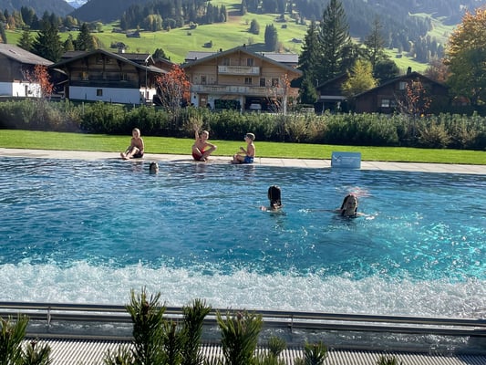 Am Dienstag lockte das sonnige Wetter zu einem Ausflug an den Lauenensee. Mit dem Postauto in Lauenen angekommen, gab es eine Wanderung zum idyllischen Lauenensee mit herrlichem Panorama. Mittwochs folgte dann der Ausflug zum Seilpark in Zweisimmen. Nach einer kurzen Instruktion konnte die Lagerschar leichte und schwierige Routen hoch in den Bäumen zurücklegen. Jede Seilrutsche machte sichtlich Spass. Bevor am Donnerstagabend der abwechslungsreiche bunte Abend stattfand, besuchten die Kinder nachmittags das Hallenbad in Gstaad.